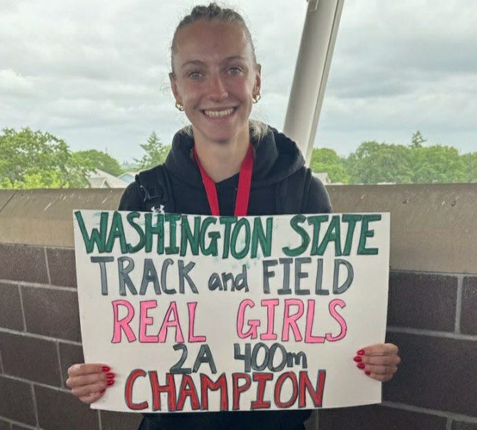 SheWon archives the achievements of female athletes who were displaced by male competitors in women’s sports. We lift up athletes such as Lauren Matthew, the 400-meter runner from Washington who lost to a boy six times, including at the 2024 and 2025 state championships — but should have won. The site (SheWon.org) records the names and podium positions (first, second, or third) of women and girls, providing links to raw results and news stories.